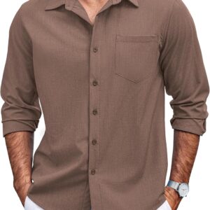 Men’s Casual Button Down Shirts Long Sleeve Untucked Shirts Regular Fit Linen Shirt