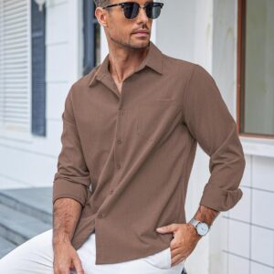 Men's Casual Button-Down Shirt Long Sleeve Linen Casual Shirts for Men Wrinkle Free Shirt, Beige, X-Large