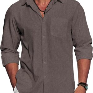 Men’s Long Sleeve Button Down Shirts Casual Cotton Linen Shirts Summer Beach Shirt with Pocket