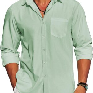 Men's Long Sleeve Button Down Shirts Casual Cotton Linen Shirts Summer Beach Shirt with Pocket