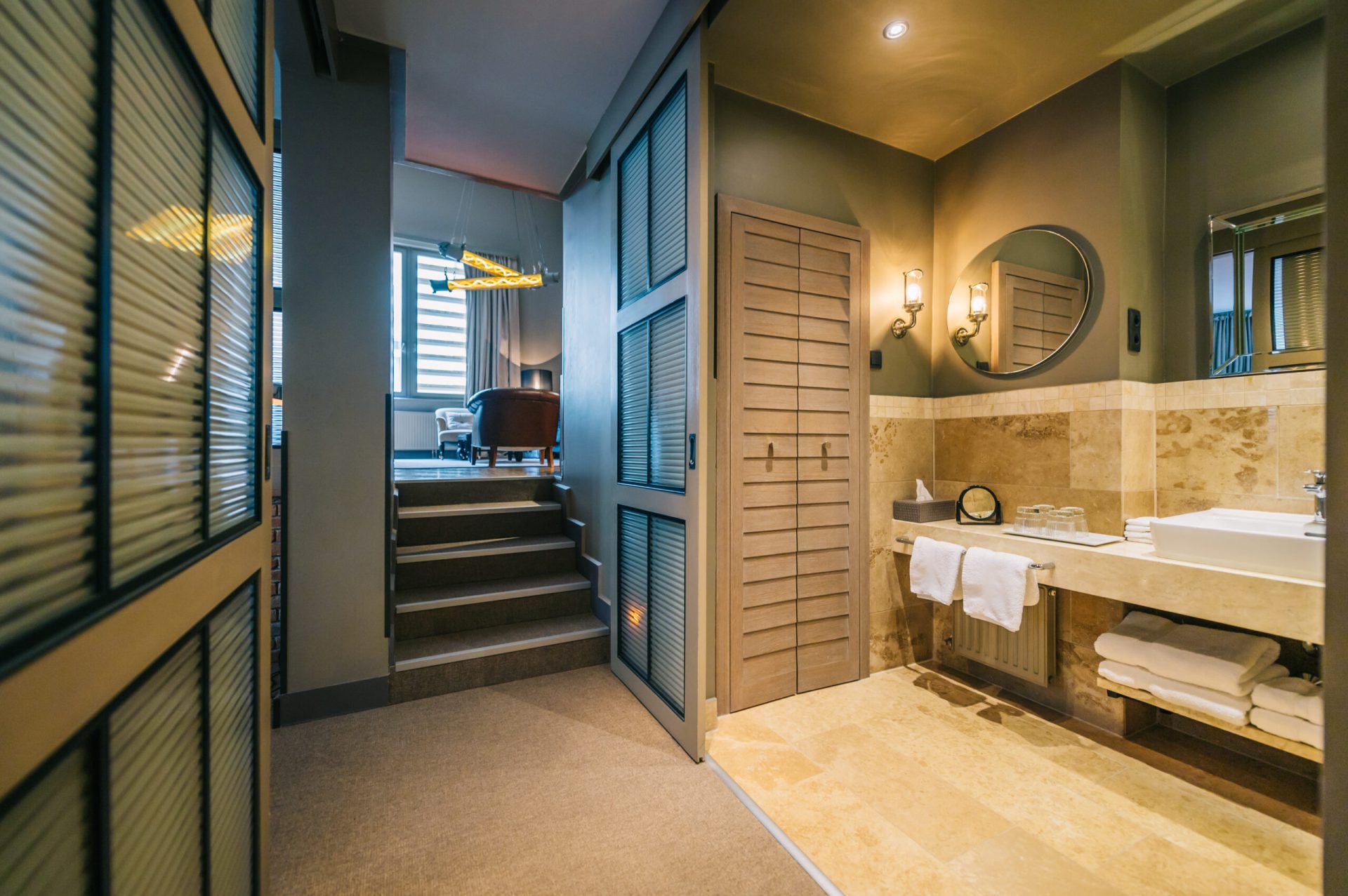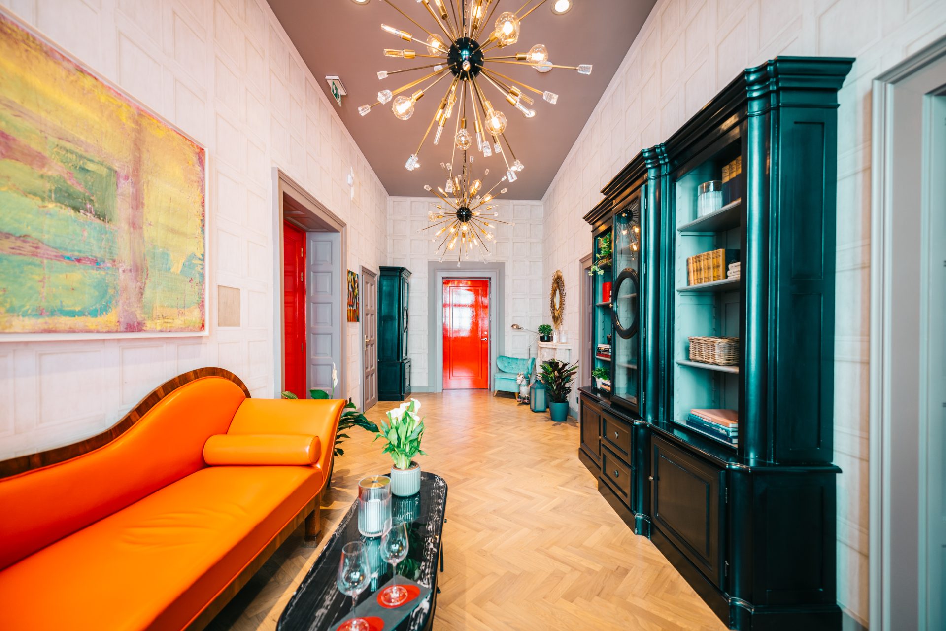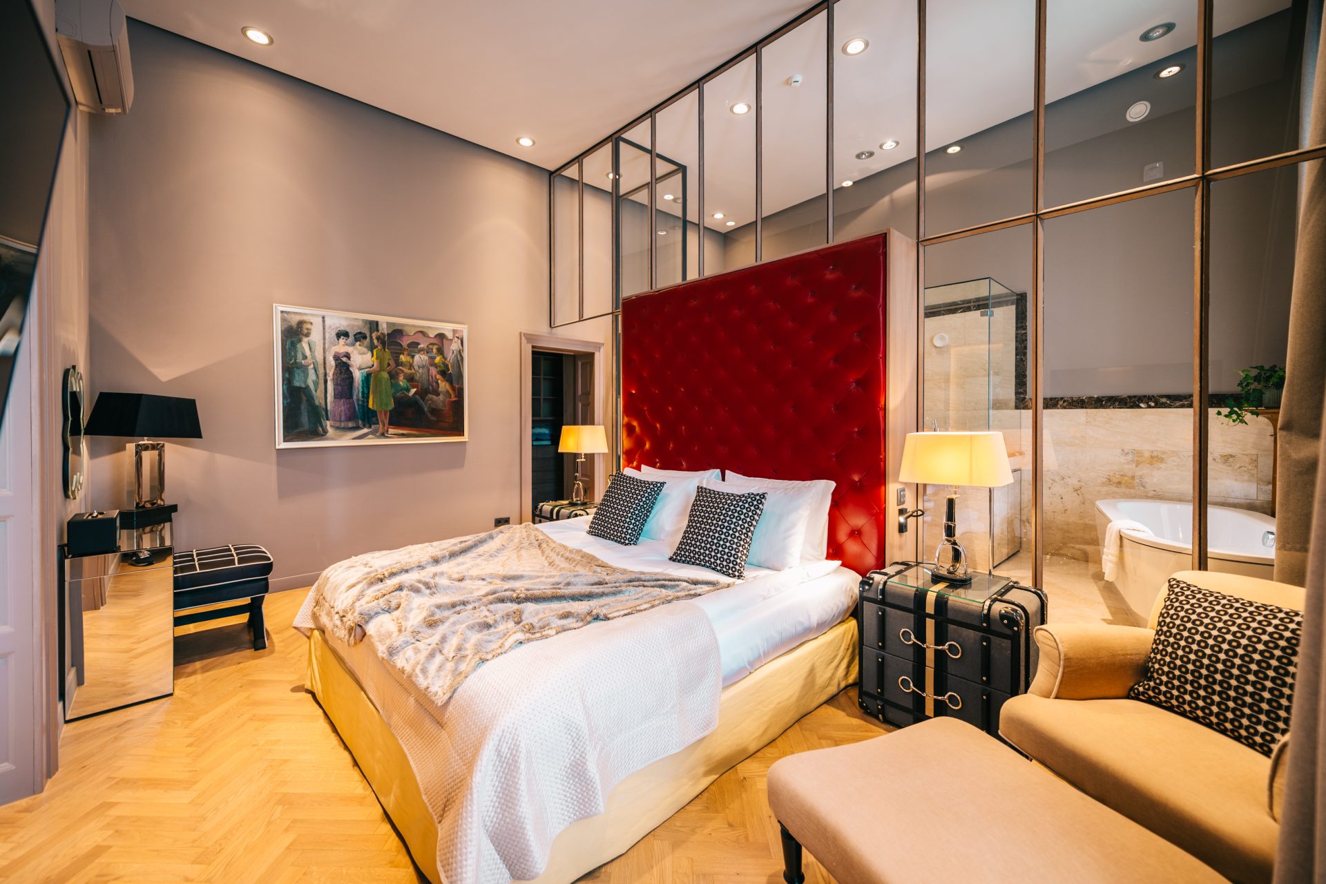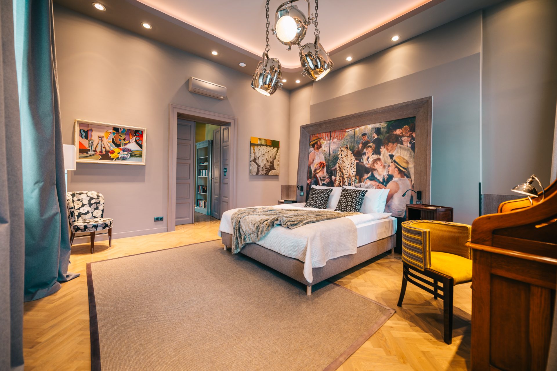 Stylish suite decorated with selected original vintage and modern furniture